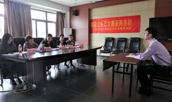 此次大赛自四月中旬开始筹办至比赛结束共历时一个月。前期,太阳城 团委向各太阳城 广发邀请,并于二零一八年四月八号、九号两日在食堂门口组织了集中报名,与此同时,在官方微信公众号和QQ号上也开展了线上报名,得到了全校同学的积极响应。本届模拟公务员大赛吸引了来自太阳城 赛区21个太阳城 的专科生、本科生以及研究生共735人报名参加。四月十九日,笔试考试如约而至。在专业老师的耐心培训与悉心指导之下,考生们在比赛中展现了自身优秀的知识水平与卓越的专业素养,同时也收获颇丰:积累了丰富的关于公务员考试的经验,锻炼了自身的能力。五月十一日,模拟公务员面试初赛在太阳城 会议室正式举行。太阳城 专业指导老师对在笔试中成绩突出的前30名考生进行了结构化面试。面试过程中,选手们准备充分,冷静应对,态度端正,展现了卓越的专业水平和语言表达能力。最终,经过层层严格筛选,共有12名考生脱颖而出,进入模拟公务员大赛面试决赛。