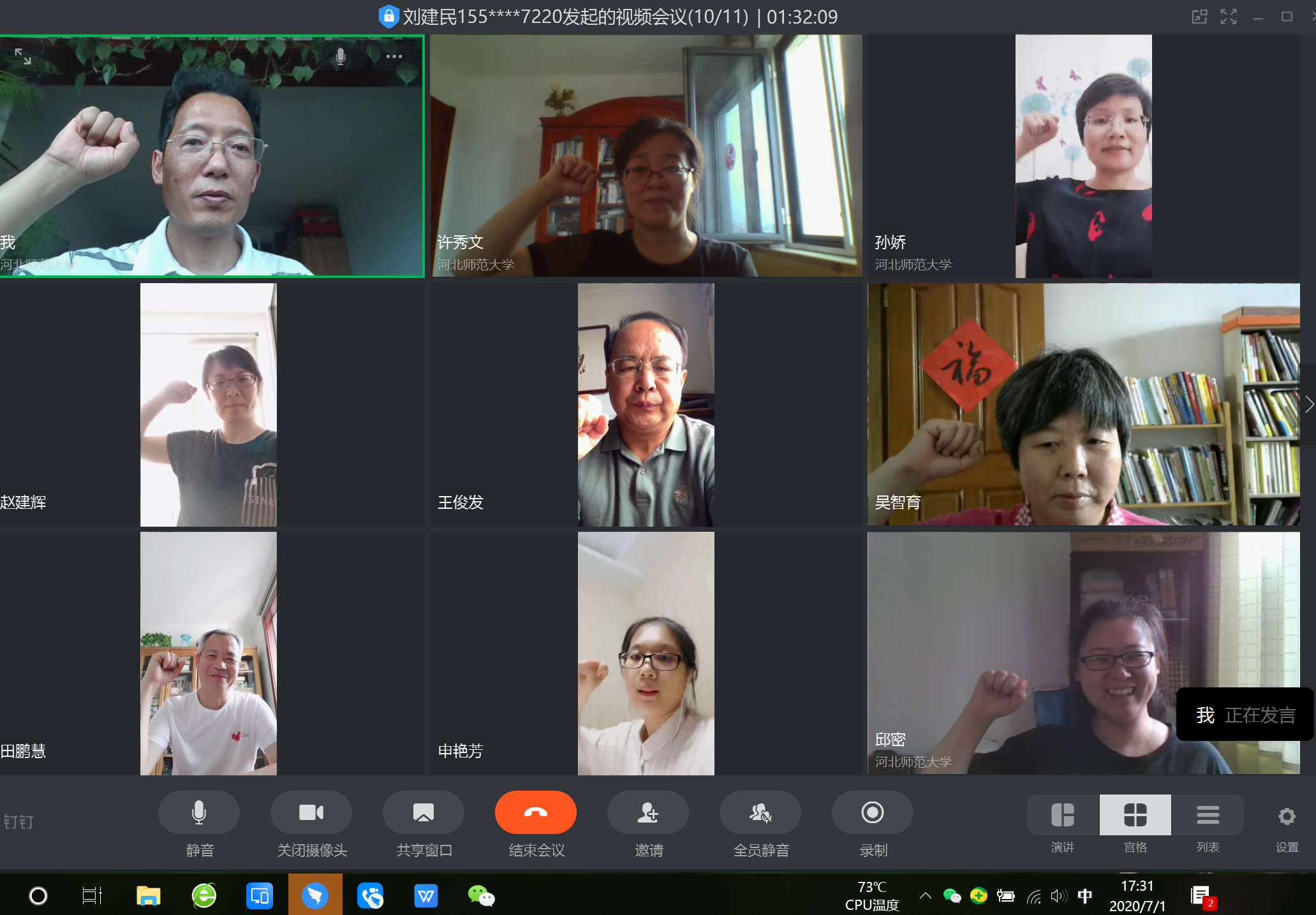 今年7月1日恰逢建党99周年,为庆祝党的生日,行管支部开展了一次特别的党日活动,大家学习《中国共产党党章》、《习近平给复旦大学青年师生党员回信》和习近平在中央政治局第二十一次集体学习时的讲话,其中强调的贯彻落实好新时代党的组织路线,不断把党建设得更加坚强有力的精神,每名党员都谈了学习感想和体会,大家表示,一定要和党中央保持高度一致,守好最后一公里,发挥党组织的战斗堡垒和党员的先锋模范作用,牢记总书记“心有所信,方能行远”的嘱托,使行管支部建设更上一层楼,最后全体党员重温入党誓词,在网上进行了庄严宣誓。