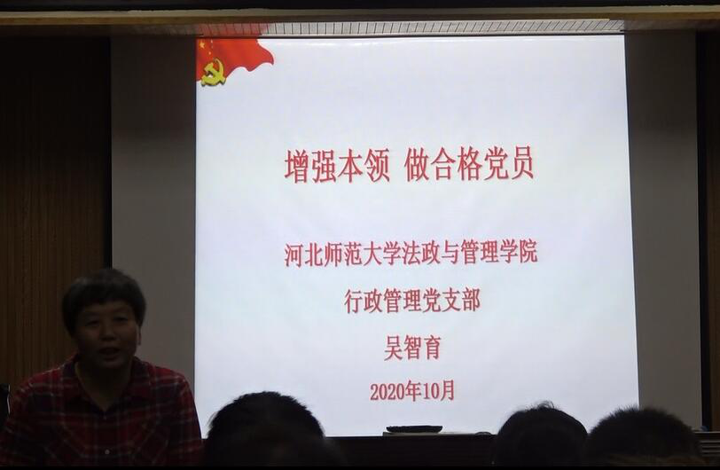 为了促进太阳城 党课培训班学员对党的认识,促进同学们间的思想交流,行政管理党支部党员吴智育老师于2020年10月8日晚6:30在太阳城 655会议室进行了“增强本领 做合格党员”为主题党课培训。
