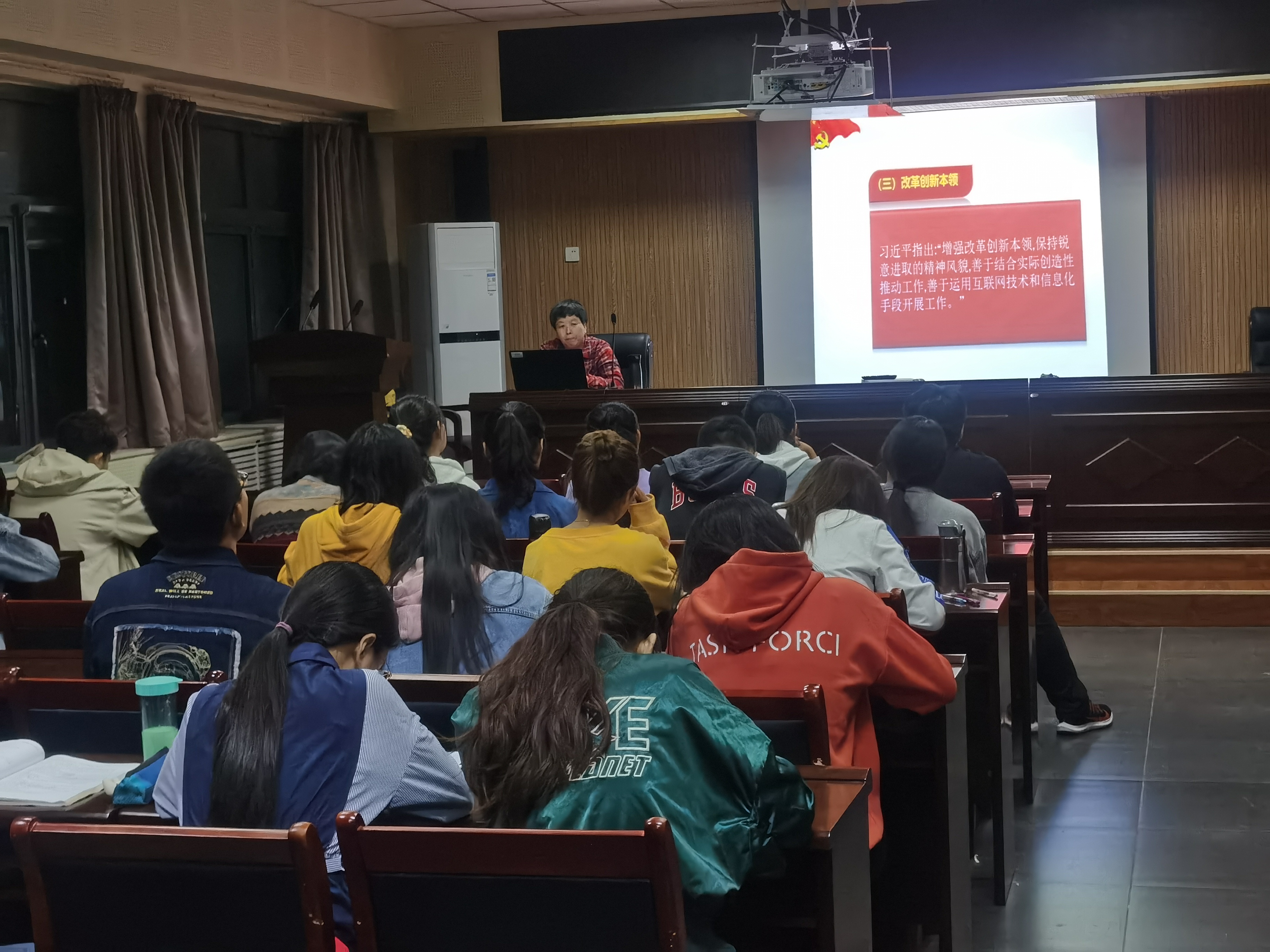 其次,吴老师就学习本领、政治领导本领、改革创新本领、科学发展本领、依法执政本领、群众工作本领、狠抓落实本领、驾驭风险本领等八大本领的出处、内涵进行了细致入微的讲解。